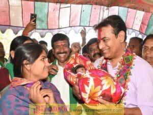 లగచర్ల బాధిత మహిళ జ్యోతి బిడ్డకు ‘భూమి నాయక్’ అని నామకరణం చేశారు బీఆర్ఎస్ వర్కింగ్ ప్రెసిడెంట్ కేటీఆర్. ఒకవైపు కడుపులో ఉన్న బిడ్డ ఆగమైతదని బుగులైనా…మరోవైపు కాంగ్రెస్ సర్కార్ తన భర్తను అన్యాయంగా జైల్లో పెట్టి చిత్ర హింసలు పెడుతున్నా..అన్నిటినీ దిగమింగి, బీఆర్ఎస్ పార్టీ సహకారంతో న్యాయం కోసం కొట్లాడింన్నారు.ఢిల్లీ దాకా పోయింది…కర్కశ కాంగ్రెస్ సర్కార్ పై విజయం సాధించిందన్నారు. తన భర్తను జైలు నుండి బయటకు తెచ్చుకుంది.. బిడ్డకు జన్మనిచ్చింది.. వీర వనిత లగచర్ల జ్యోతి అని కొనియాడారు. చిన్నారిని ఎత్తుకున్న కేటీఆర్.. భూమి నాయక్ అని పేరు పెట్టారు.ఈ కార్యక్రమంలో మాజీ మంత్రులు శ్రీనివాస్ గౌడ్,నిరంజన్ రెడ్డి,డాక్టర్ సి లక్ష్మారెడ్డి,మహమూద్ అలీ,సత్యవతి రాథోడ్,సబితా ఇంద్రారెడ్డి,వేముల ప్రశాంత్ రెడ్డి,మాజీ ఎమ్మెల్యేలు ఎస్ రాజేందర్ రెడ్డి,చిట్టెం రామ్మోహన్ రెడ్డి,ఆల వెంకటేశ్వర్ రెడ్డి,తదితరులు పాల్గొన్నారు.