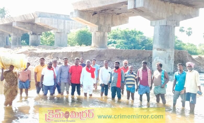 క్రైమ్ మిర్రర్ ప్రతినిధి, మాడుగులపల్లి:- బడ్జెట్ సరిపోలేదనే సాకుతో బ్రిడ్జి నిర్మాణాన్ని నిలిపివేశారు. టెండర్ ప్రక్రియ పూర్తి చేసి వెంటనే నిధులు మంజూరు చేసి బ్రిడ్జి నిర్మాణం పూర్తి చేయాలని సిపిఎం రాష్ట్ర కమిటీ సభ్యులు ముదిరెడ్డి సుధాకర్ రెడ్డి మాడుగులపల్లి మండలం పంచాయతీరాజ్ ఏఈ మధును కోరారు. నల్గొండ జిల్లా మాడుగులపల్లి మండలం పరిధిలోని ఆగామోత్కూర్ పాలేరు వాగు పై నిర్మాణంలో ఉన్న నూతన బ్రిడ్జి నీ సిపిఎం రాష్ట్ర కమిటీ సభ్యులు ముదిరెడ్డి సుధాకర్ రెడ్డి స్థానిక సిపిఎం నాయకులతో, రైతులతో కలిసి సోమవారం బ్రిడ్జిని పరిశీలించారు. ఈ సందర్భంగా ఆయన మాట్లాడుతూ..ఆగామోత్కూర్ పాలేరు వాగుపై నిర్మాణంలో ఉన్న బ్రిడ్జిని బడ్జెట్ సరిపోలేదనే కారణంతో అర్థాంతరంగా నిలిపివేయడం జరిగింది. బడ్జెట్ టెండర్ ప్రక్రియ పూర్తి చేసి వెంటనే నిధులు మంజూరు చేసి బ్రిడ్జి నిర్మాణం పూర్తి చేయాలన్నారు. ఈ కార్యక్రమంలో మండల కార్యదర్శి రొండి శ్రీనివాస్,మండల నాయకులు దేవిరెడ్డి అశోక్ రెడ్డి, పుల్లెంల శ్రీకర్,చారి,పతాని శ్రీను, శాఖ కార్యదర్శి బంటు రాజు, మరియు పార్టీ సభ్యులు,రైతులు పాల్గొన్నారు.