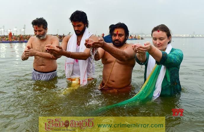 క్రైమ్ మిర్రర్, ఆన్లైన్ డెస్క్ :- ఆంధ్రప్రదేశ్ రాష్ట్ర డిప్యూటీ సీఎం పవన్ కళ్యాణ్ ఉత్తరప్రదేశ్ రాష్ట్రంలోని ప్రయాగ్ రాజ్ లో జరుగుతున్నటువంటి మహా కుంభమేళా ఉత్సవాలలో పాల్గొన్నారు. పవన్ కళ్యాణ్ తన భార్య అన్నా లేజినావాతో కలిసి మహా కుంభమేళాలో పవిత్ర స్నానం చేశారు. అలాగే త్రివేణి సంగమం వద్దకు బోటులో చేరుకొని గంగా మాతకు హారతులు ఇచ్చి ప్రత్యేక పూజలు నడుమ మళ్లీ పుణ్యస్నానాలు ఆచరించారు. ఈ మహా కుంభమేళాలో పాల్గొనడం అందరికీ గొప్ప అవకాశం అని పవన్ కళ్యాణ్ తెలియజేశారు. ఇంతటి గొప్ప కార్యక్రమం నిర్వహిస్తున్న ఉత్తరప్రదేశ్ రాష్ట్ర ముఖ్యమంత్రి యోగి ఆదిత్యనాథ్ కు తన ప్రభుత్వానికి ధన్యవాదాలు తెలిపారు.