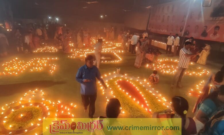 క్రైమ్ మిర్రర్, పెబ్బేరు:- కార్తీక మాసం సందర్భంగా ఆలయాలు ఆధ్యాత్మికతను సంతరించుకున్నాయి. ముఖ్యంగా శివాలయాల్లో భక్తులు రోజూ అధిక సంఖ్యలో వెళ్లి తెల్లవారుజామునే తొలి దీపం పెడుతూ కాంతులు వెదజల్లుతున్నారు. కొన్ని ఆలయాల్లో తులసీ, ఉసిరి వృక్షాలకు, రావి, వేప చెట్లకు కల్యాణం జరిపిస్తున్నారు. కార్తీకమాసంలో చెట్లకు పెళ్లిల్లు చేస్తే ఇంట్లో సిరిసంపదలు నెలవవుతాయని నానుడి. అందులో భాగంగానే సోమవారం పెబ్బేరు పట్టణంలోని శ్రీశ్రీశ్రీ వాసవి కన్యకా పరమేశ్వరి అమ్మవారి ఆలయంలో పట్టణ అధ్యక్షుడు దేవరశెట్టి మహేష్, మహిళా, యువజన సంఘాల ఆధ్వర్యంలో లక్ష దీపోత్సవాన్ని కనుల పండువగా నిర్వహించారు. సోమవారం సాయంత్రం మహిళలు, పురుషులు పెద్ద ఎత్తున పాల్గొని కార్తీక దీపాన్ని వెలిగించారు. అనంతరం కమిటీ సభ్యులు శివ, పార్వతుల ఉత్సవ విగ్రహాలతో ఆలయం చుట్టూ పల్లకీసేవ నిర్వహించారు. అనంతరం ఆలయానికి వచ్చిన భక్తులకు దాతలు దేవరశెట్టి బాలరాజు, కవిత దంపతులు అల్పాహారాన్ని వితరణ చేశారు. ఈ కార్యక్రమంలో ఆలయ కమిటీ సభ్యులు భక్తులు పాల్గొన్నారు.
