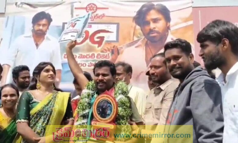 క్రైమ్ మిర్రర్, చౌటుప్పల్ :- పవర్స్టార్ పవన్ కల్యాణ్ అభిమానులు ఎప్పుడూ ప్రత్యేకంగా తమ అభిమానాన్ని చాటుకుంటారు. తాజాగా విడుదలకు సిద్ధమైన OG సినిమా ఫస్ట్ బెనిఫిట్ షో టికెట్ చౌటుప్పల్లో రికార్డు స్థాయిలో వేలం వేయబడింది. వేలంలో పలువురు అభిమానులు పోటీ పడ్డారు. చివరికి చౌటుప్పల్కు చెందిన ఆముదాల పరమేష్ టికెట్ను రూ.1,29,999కు సొంతం చేసుకున్నారు. ఈ మొత్తం ఇప్పటివరకు చౌటుప్పల్లో ఎప్పుడూ పలకని అత్యధిక ధరగా నమోదైంది. వేలంపాటలో గెలిచిన పరమేష్కు ఫస్ట్ టికెట్ను జబర్దస్త్ కమెడియన్ వినోదిని అందజేశారు. అభిమానుల హర్షధ్వానాల నడుమ టికెట్ అందజేత జరగగా, థియేటర్ ప్రాంగణం పండుగ వాతావరణాన్ని సంతరించుకుంది.