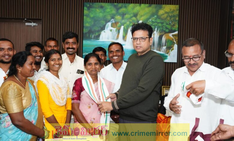 క్రైమ్ మిర్రర్, మహాదేవపూర్ :-జయశంకర్ భూపాలపల్లి జిల్లా, మహదేవపూర్ మండలం, మద్దులపల్లి సర్పంచిగా నూతనంగా ఎన్నికైన ఎల్పుల సరిత వార్డు సభ్యులతో కలిసి హైదరాబాదులో మంత్రి దుద్దిళ్ళ శ్రీధర్ బాబు ను మర్యాదపూర్వకంగా కలిసి పుష్పగుచ్ఛం అందజేసి శాలువాతో సన్మానించారు. మంత్రి శ్రీధర్ బాబు సర్పంచి సరిత, ఉప సర్పంచ్ లచ్చిరెడ్డి, యువకులు మహి, సురేష్, విజయ్, సడవలికి కాంగ్రెస్ పార్టీ కండువా కప్పి పార్టీలోకి ఆహ్వానించారు. ఈ కార్యక్రమంలో వార్డు సభ్యులు చకినారపు సంతోష్, చకినారపు తేజస్విని, పూతల శ్రావణి, పిప్పిరెడ్డి లచ్చిరెడ్డి (ఉపసర్పంచ్), పూతల దేవిక, పూతల వెంకటేష్, కోరాళ్ళ మనక్క, చాకినరపు శ్రీజ మండల సీనియర్ కాంగ్రెస్ నాయకులు బన్సోడ రామారావు, నాయకులు సురేందర్, సమ్మయ్య, దుర్గయ్య, రాకేష్, రవి మరియూ తదితరులు పాల్గొన్నారు.
