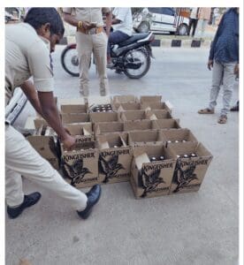 మర్రిగూడ,క్రైమ్ మిర్రర్ :- తెలంగాణ రాష్ట్ర వ్యాప్తంగా స్థానిక ఎన్నికల జోరు అంతా ఇంతా కాదనే చెప్పుకోవాలి.. ఈ నేపథ్యంలో ఓటర్లకు మధ్యం పంపిణి చెయ్యడం కోసం, తరలిస్తున్న మధ్యాన్ని మాల్ చెక్ పోస్ట్ వద్ద పోలీసులు పట్టుకున్నారు.. డబ్బు, మందుతో ఓటర్లను ప్రసన్నం చేసుకునే నేపథ్యంలో, మర్రిగూడ మండలం, అజ్జిలాపురం గ్రామసర్పంచ్ అభ్యర్థి నిర్వాహకం పోలీసుల చేతిలో బట్టబయలైంది.. సుమారు 24 కాటన్ల బీర్లను పోలీసులు శనివారం పట్టుకున్నారు. కోట్లకు అధిపతి అయిన అజ్జిలాపురం అభ్యర్థి నిర్వాహకానికి, డిపార్ట్మెంట్ శనివారం తెర వేశారు.. లోతైన విచారణతో సదరు అభ్యర్థిపై చర్యలు తీసుకోవాలని మండల ప్రజలు కోరుతున్నారు.