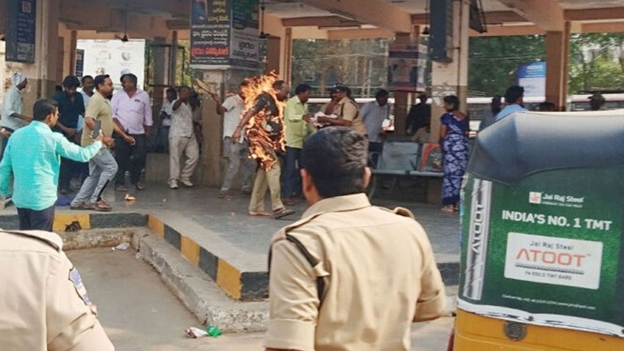 తెలంగాణలో ఆర్టీసీ కార్మికుల వరుస ఆత్మహత్యాయత్నాలు రాష్ట్రవ్యాప్తంగా పెను కలకలం రేపుతున్నాయి. వేర్వేరు ప్రాంతాల్లో ముగ్గురు డ్రైవర్లు బలవన్మరణానికి ప్రయత్నించడం ప్రజలను ఉలిక్కిపడేలా చేసింది. ఆర్టీసీని ప్రభుత్వంలో విలీనం చేయడంలో జరుగుతున్న జాప్యంపై నిరసన వ్యక్తంచేస్తూ నర్సంపేట డిపో డ్రైవర్ కోలా శంకర్ గౌడ్ దారుణానికి ఒడిగట్టారు. ప్రభుత్వం తన హామీలను నెరవేర్చడం లేదన్న ఆవేదనతో గురువారం నర్సంపేట బస్టాండ్ ఎదుట ఆయన ఒంటిపై పెట్రోల్ పోసుకుని నిప్పంటించుకున్నారు. ఈ ఘటనలో శంకర్ గౌడ్ శరీరం 70 శాతానికి పైగా కాలిపోయింది. వెంటనే స్పందించిన స్థానికులు ఆయనను వరంగల్ ఎంజీఎం ఆసుపత్రికి తరలించారు. పరిస్థితి అత్యంత విషమంగా మారడంతో మెరుగైన వైద్యం కోసం ప్రత్యేక అంబులెన్స్లో హైదరాబాద్లోని యశోద ఆసుపత్రికి తరలించారు.