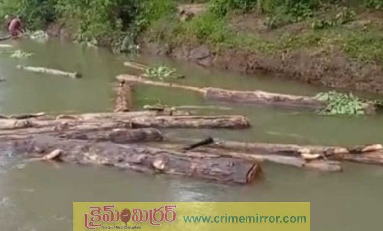 – కాలేశ్వరం గోదావరి ప్రాంతంలో దొరికిన కలప దుంగలు