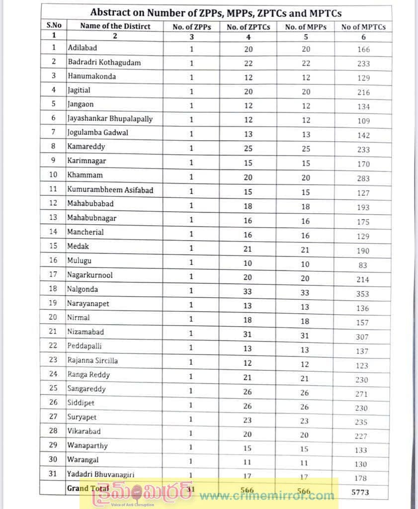 మొత్తం 5,773 ఎంపీటీసీ స్థానాలు ఉన్నట్లు వెల్లడి