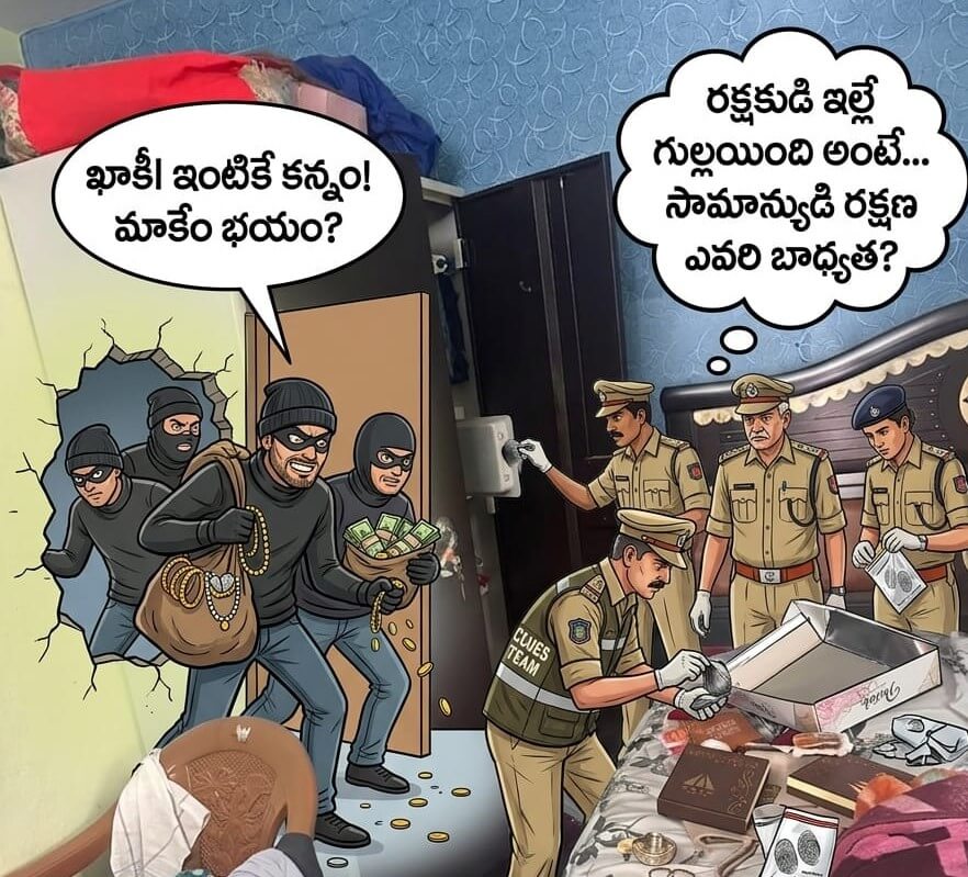 రాత్రింబవళ్లు సమాజ రక్షణ కోసం శ్రమించే ఒక పోలీస్ అధికారి ఇల్లే సురక్షితం కానప్పుడు, సామాన్య పౌరుడు తన ఇంట్లో ప్రశాంతంగా నిద్రపోయే పరిస్థితి ఉందా? అనే ప్రశ్న ఇప్పుడు ప్రతి ఒక్కరినీ వేధిస్తోంది. ​పోలీస్ శాఖ అధునాతన సాంకేతికతను వాడుతున్నామని, పెట్రోలింగ్ ముమ్మరం చేశామని చెబుతున్నా, ఇలాంటి ఘటనలు క్షేత్రస్థాయిలో వైఫల్యాలను ఎత్తిచూపుతున్నాయి. గస్తీ వ్యవస్థ కేవలం రోడ్లకే పరిమితమైందా? నివాస ప్రాంతాల్లో నిఘా నీడ గమ్యం ఎటు? అనే సందేహాలు వ్యక్తమవుతున్నాయి.