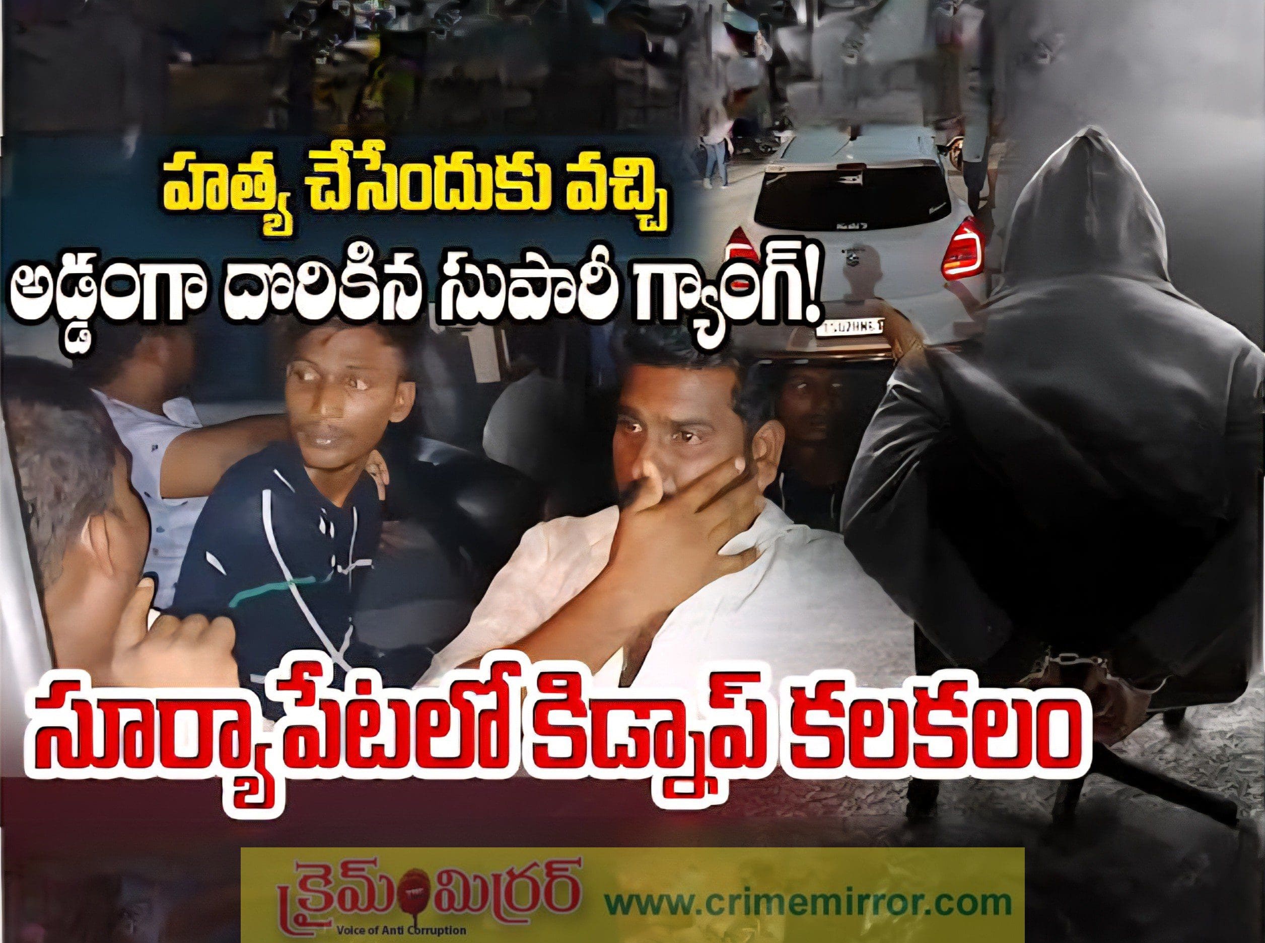 క్రైమ్ మిర్రర్, సూర్యాపేట : సూర్యాపేట పట్టణంలో కారులో చక్కర్లు కొడుతూ స్థానికులను తీవ్ర భయభ్రాంతులకు గురిచేసిన ఓ గ్యాంగ్ను స్థానికులు పట్టుకుని పోలీసులకు అప్పగించారు. పట్టణంలో అనుమానాస్పదంగా తిరుగుతున్న ఈ గ్యాంగ్పై అనుమానం రావడంతో స్థానికులు వారిని నిలువరించి కారును తనిఖీ చేశారు. ఈ తనిఖీల్లో కారు డిక్కీలో మారణాయుధాలు బయటపడటంతో స్థానికులు అవాక్కయ్యారు. వారిని సుపారీ గ్యాంగ్గా అనుమానిస్తున్న పోలీసులు, అరెస్టు చేసి విచారణ చేపట్టారు.