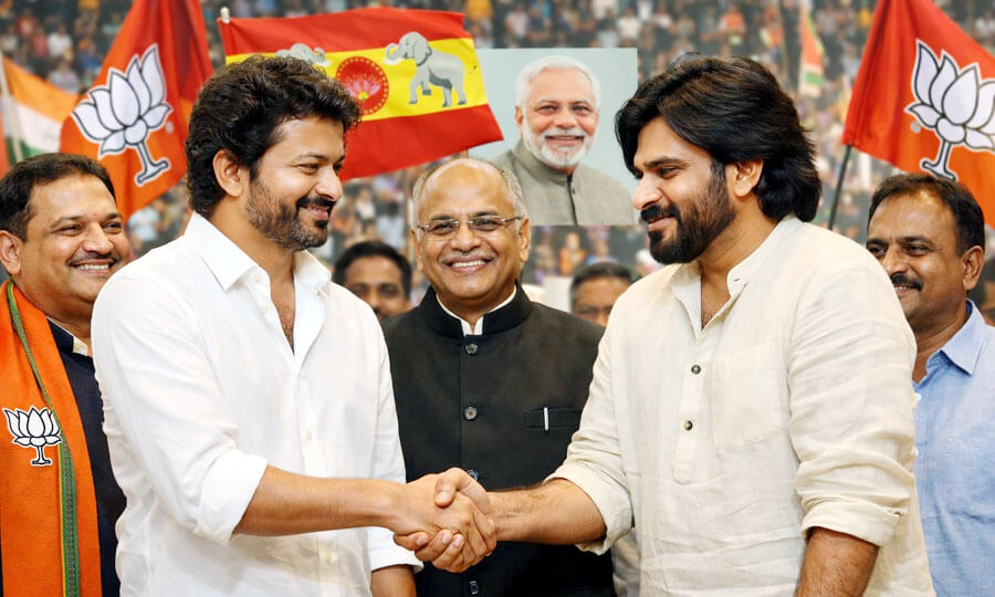 అయితే తమిళనాడులో నెలకొన్న తాజా రాజకీయ పరిస్థితుల నేపథ్యంలో భారతీయ జనతా పార్టీ ఏపీ డిప్యూటీ సీఎం పవన్ కళ్యాణ్ ను ప్రయోగిస్తున్నట్లు తెలుస్తోంది. గత రెండు రోజులుగా పవన్ కళ్యాణ్ తమిళ నటుడు విజయ్ తో చర్చలు జరుపుతున్నట్లు పొలిటికల్ వర్గాల్లో ప్రచారం నడుస్తోంది. అందులో కొంతవరకు సానుకూల ఫలితాలు వచ్చినట్లు సమాచారం. ఏపీలో తనకు ఎదురైన పరిస్థితులు.. బిజెపితో కలిసిన తర్వాత వచ్చిన ఫలితాలను పవన్ కళ్యాణ్ విజయ్ కు వివరించినట్లు సమాచారం. దీంతో ఆయన ఎన్డీఏలో చేరేందుకు సిద్ధపడినట్లు ప్రచారం నడుస్తోంది. కొద్ది రోజుల్లో దీనిపై అధికారిక ప్రకటన వచ్చే అవకాశం ఉన్నట్లు తెలుస్తోంది. మరి అందులో ఎంత వాస్తవం ఉందో చూడాలి.