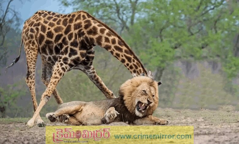 వారెవ్వా.. జిరాఫీ ఇచ్చిన పంచ్కు బిత్తరపోయిన సింహం pic.twitter.com/mXnkRYGU8d